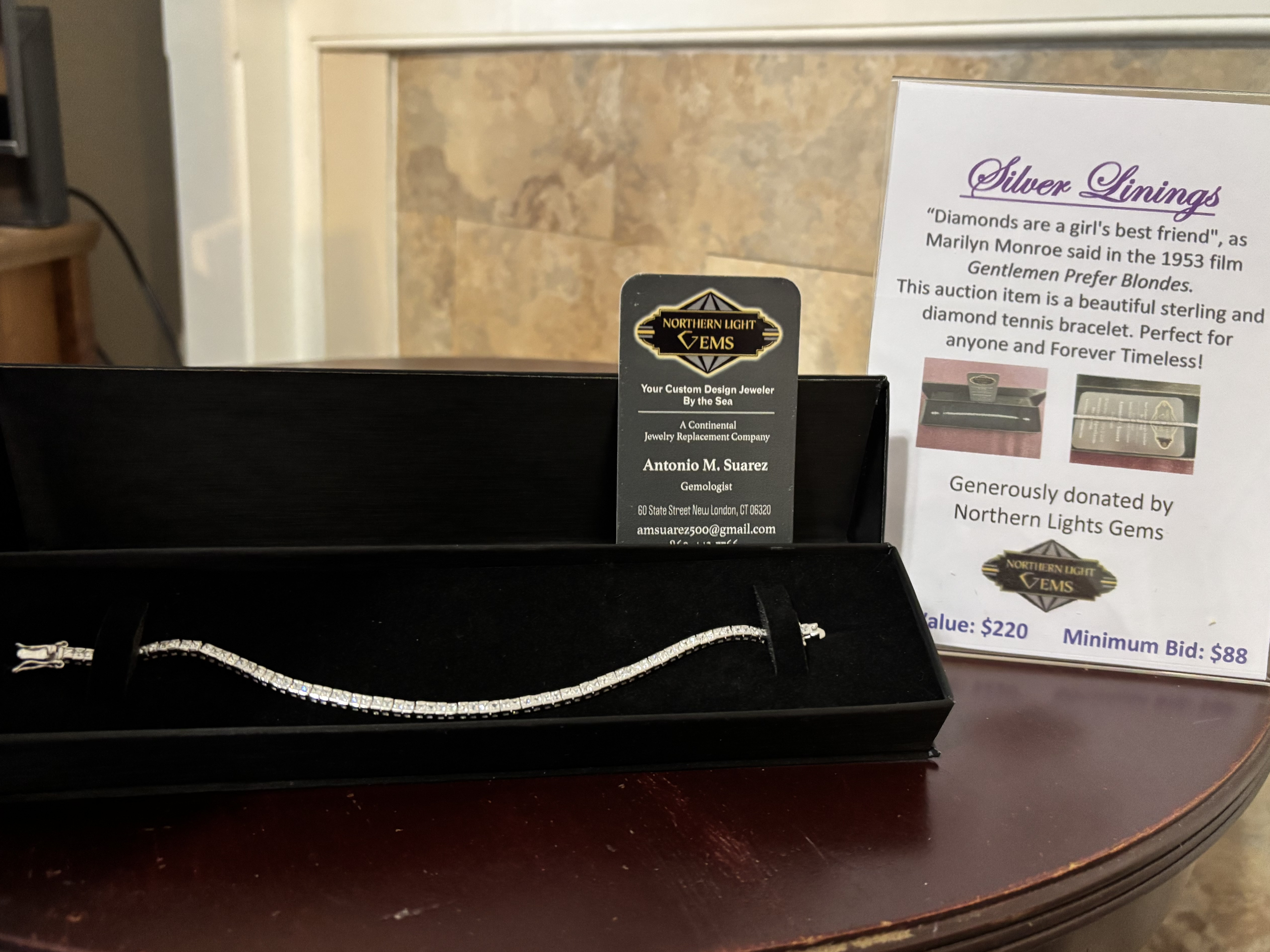 This auction item is a beautiful sterling and diamond tennis bracelet. Perfect for anyone and forever timeless!