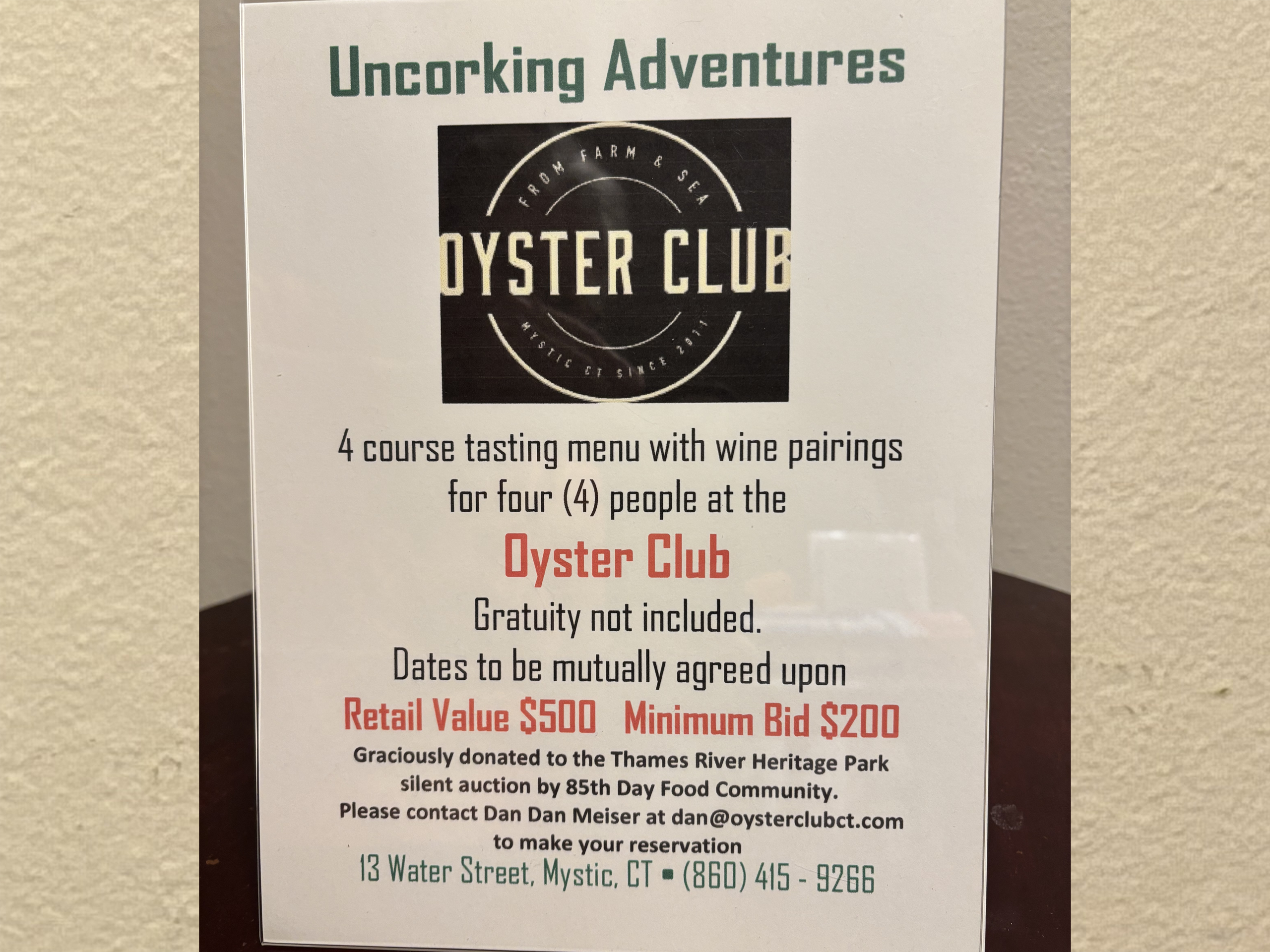A 4-course tasting menu with wine pairings for four (4) people at the Oyster Club. Gratuity not included.