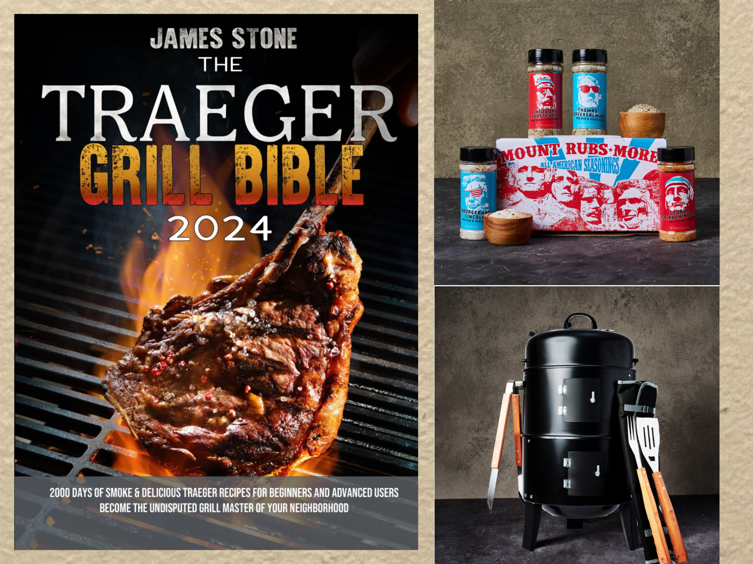 The Traeger Grill Bible by James Stone. "Mount Rubsmore," a blend of All-American seasonings. "Wholly Smokes", a DIY Build Your Own Barrel Smoker Kit.